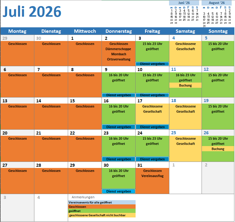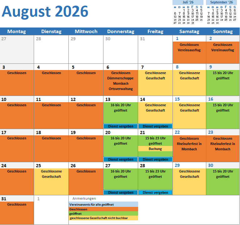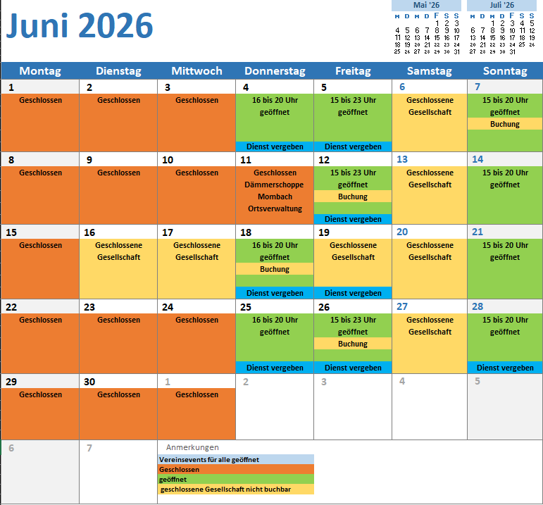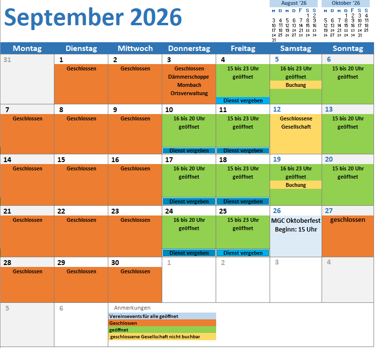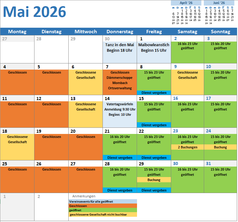 Feste Termine sind hier der Tanz in den Mai und der traditionelle Maibowle-Anstich am ersten Mai sowie das Oktoberfest mit Live-Musik.
